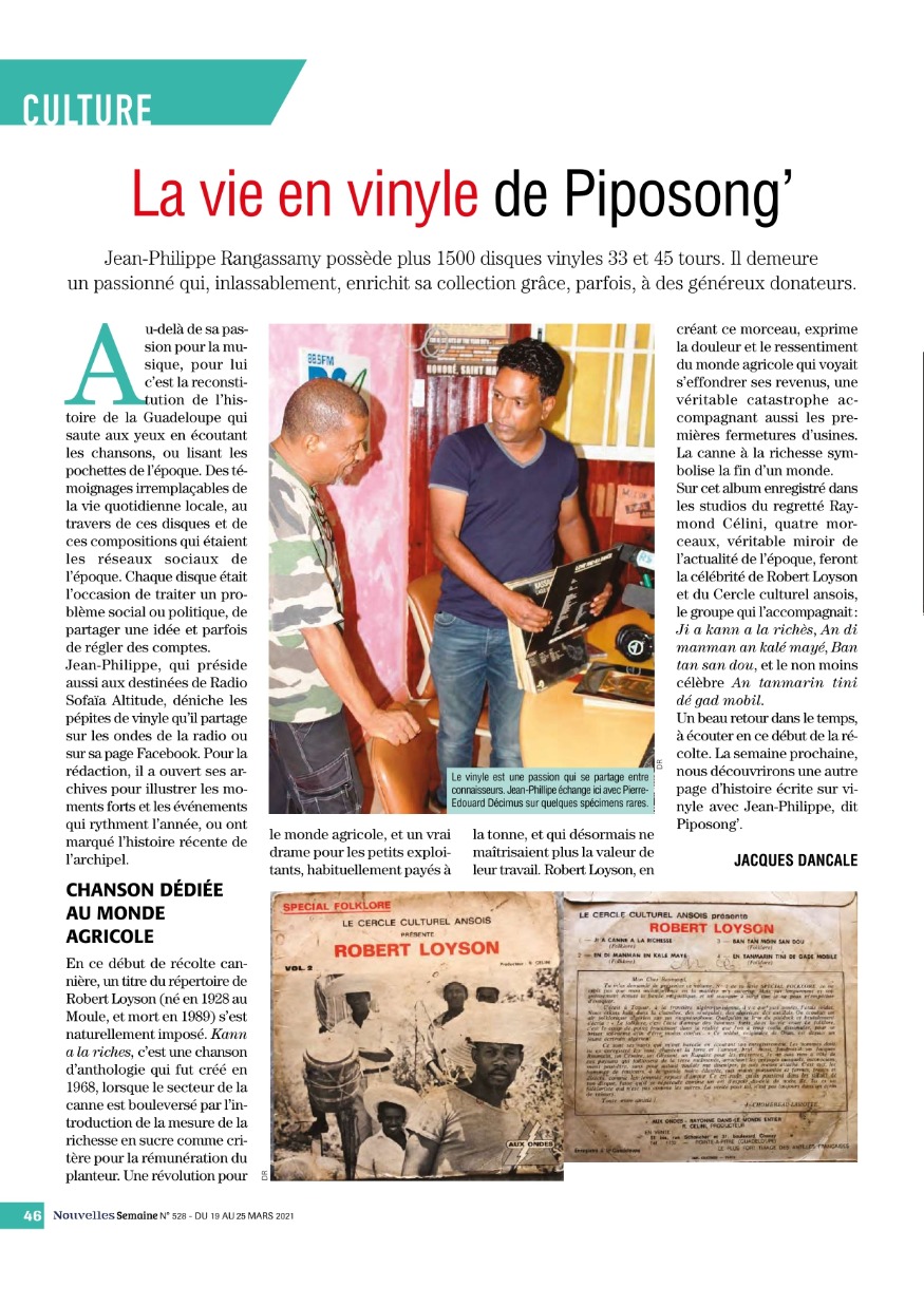 Jean-Phillipe Rangassamy possède plus 1500 disques vinyles 33 et 45 Tours. Il demeure un passioné qui, inlassablement, enrichit sa collection grace, parfois, à des généreux donateurs.