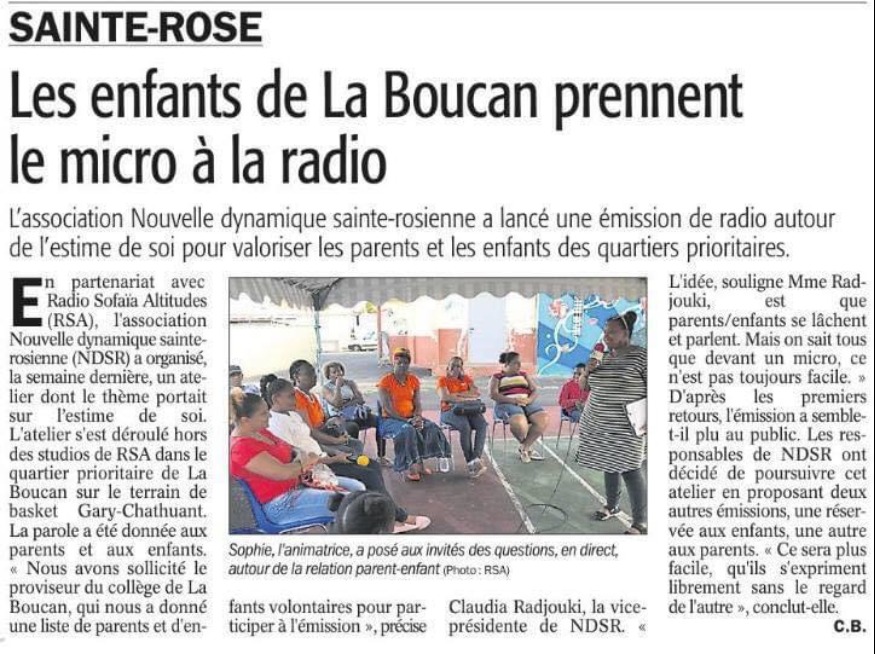 L'association nouvelle dynamique sainte-rosienne a lancé une émission de radio autour de l'estime de soi pour valoriser les parents et les enfants des quartiers prioritaires.